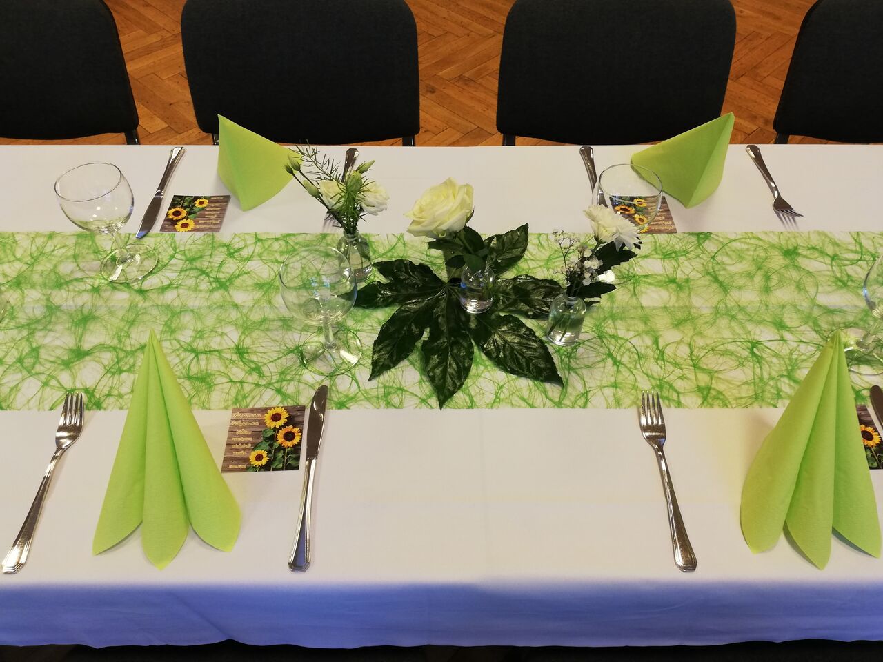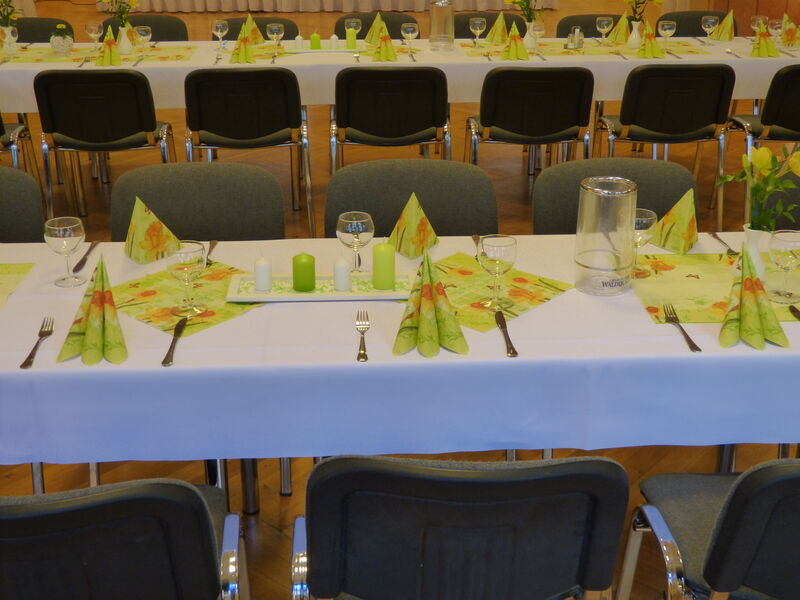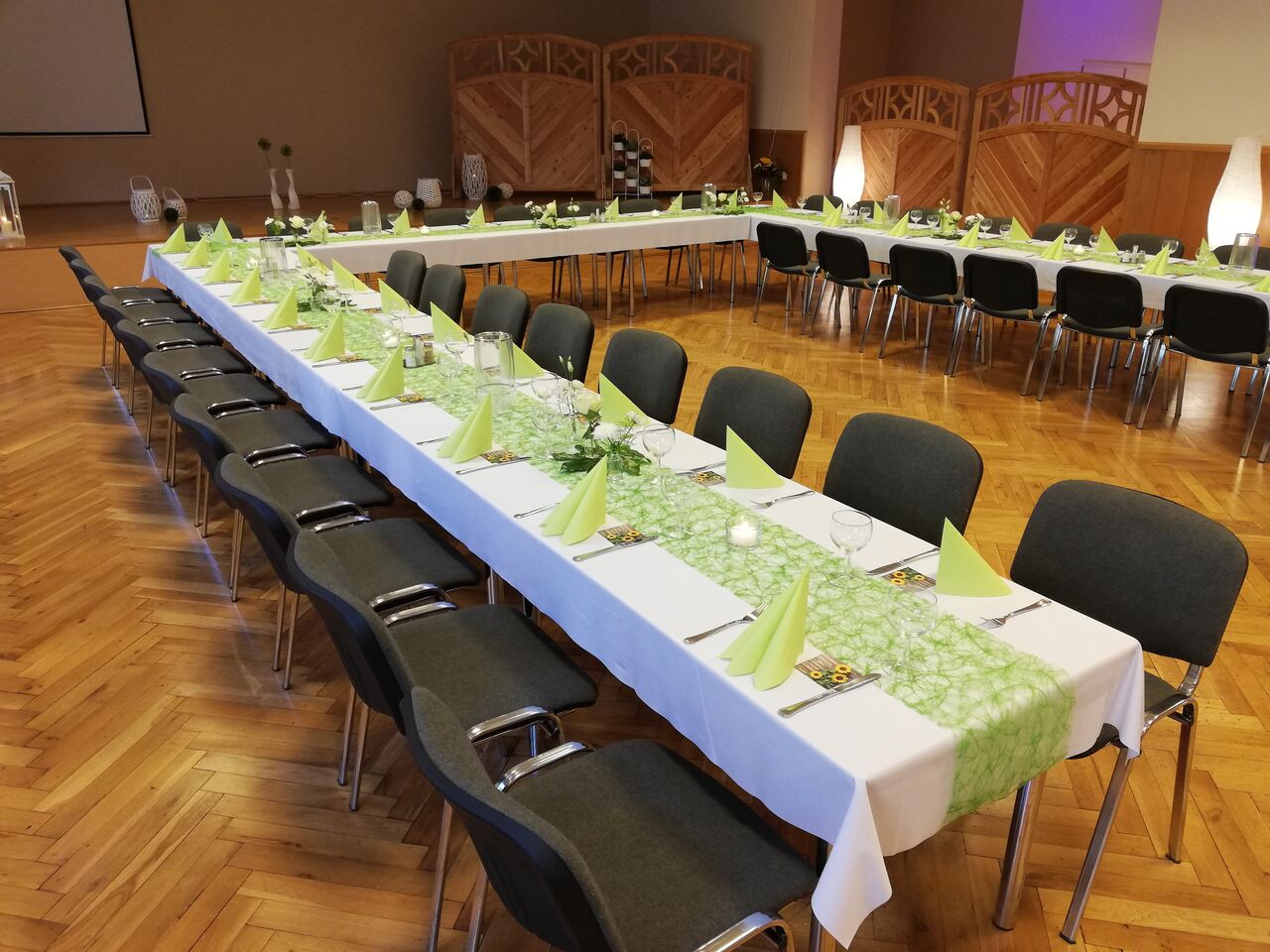 Familienfeier 32 Personen, seitlich mit Kindertisch, Abtrennung des Saales (Verkleinerung)